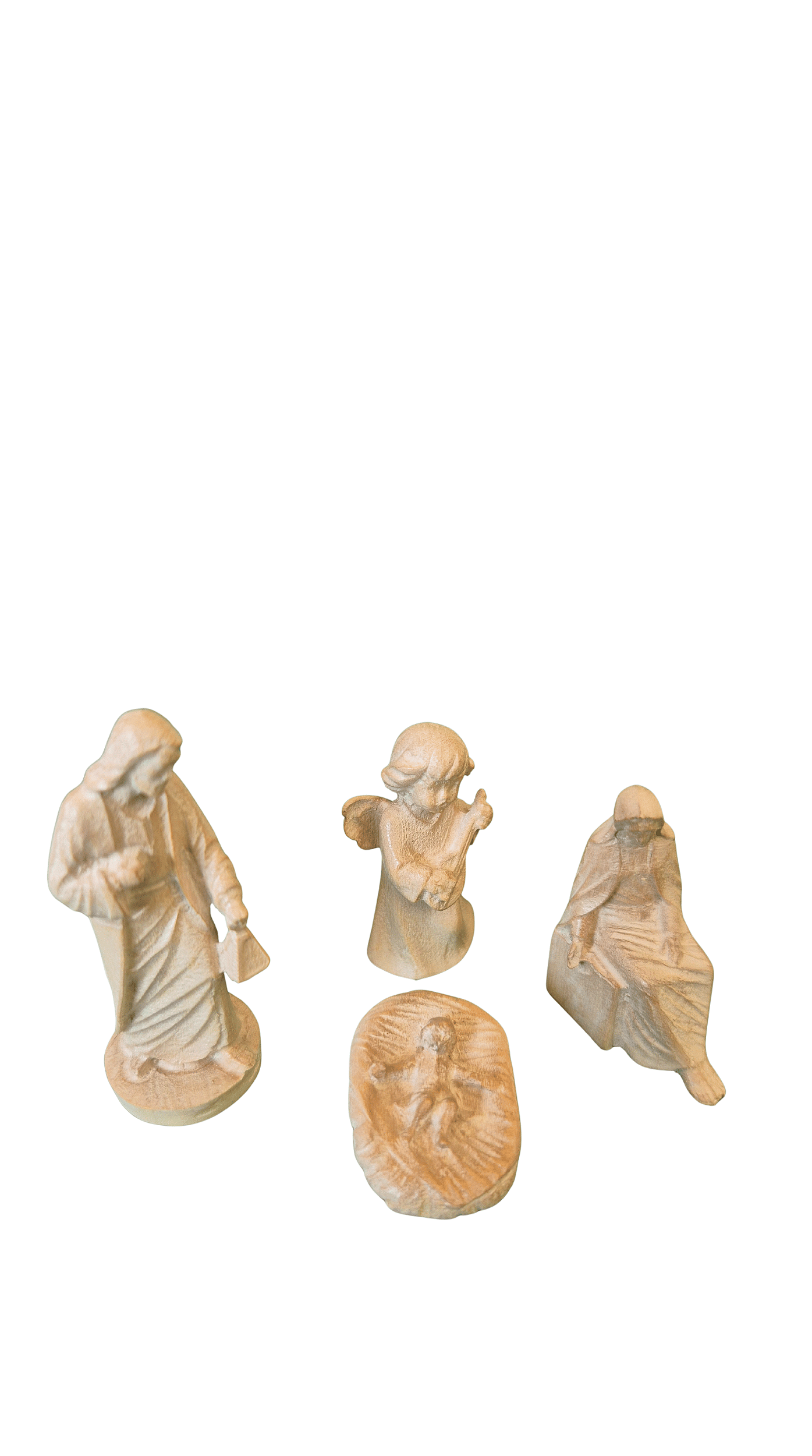 Presépio 7 cm está com 4 peças, José, Maria, Menino Jesus, Anjo musical.
